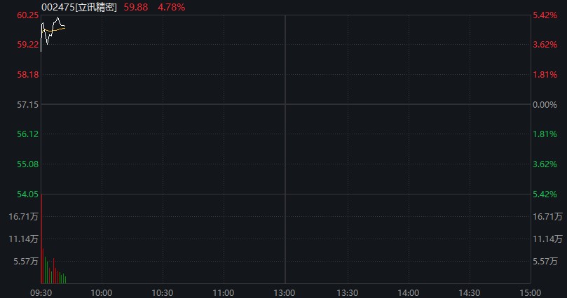 消息面上,根据研究机构 Counterpoint Research 的最新分析,iPhone 17 系列在中美两地开售前 10 天的销量,较 iPhone 16 同期高出 14%。苹果股价周一一度上涨 4.2% 至 262.9 美元,市值约为 3.9 万亿美元,成为仅次于英伟达的世界第二高市值的公司。 09:40 创业板指涨幅扩大至 1%,苹果产业链、AI 硬件方向领涨,中际旭创涨超 4%,蓝思科技涨 3%。立讯精密涨近 5%。