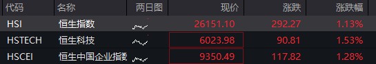 盘面上,CPO、6G 概念延续反弹,黄金股普遍回暖,超硬材料、深海科技概念表现活跃;电解液、稳定币、福建板块普遍下跌。 09:21 恒指高开 1.17%,恒生科技指数涨 1.84%。