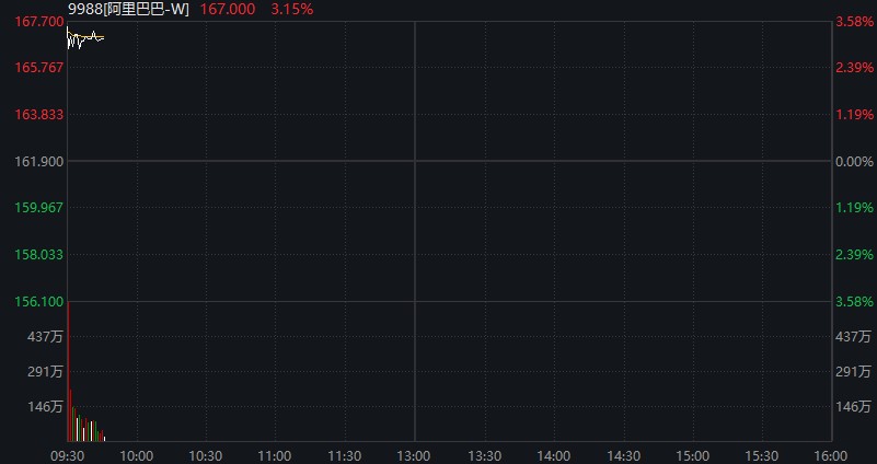 09:46 阿里巴巴涨超 3%,快手、商汤、联想集团涨超 2%。